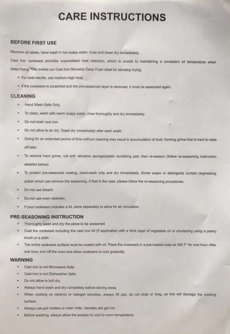 The cast iron fry paella pan is a durable and long-lasting cooking tool made from one-piece constructed cast iron. It is suitable for various cooking methods including frying, stir-frying, deep-frying, and can be used on gas, induction cookers, outdoor open fires, and in the oven. The pan is pre-seasoned and designed for convenient use, offering a natural non-stick surface with vegetable oil protection.
