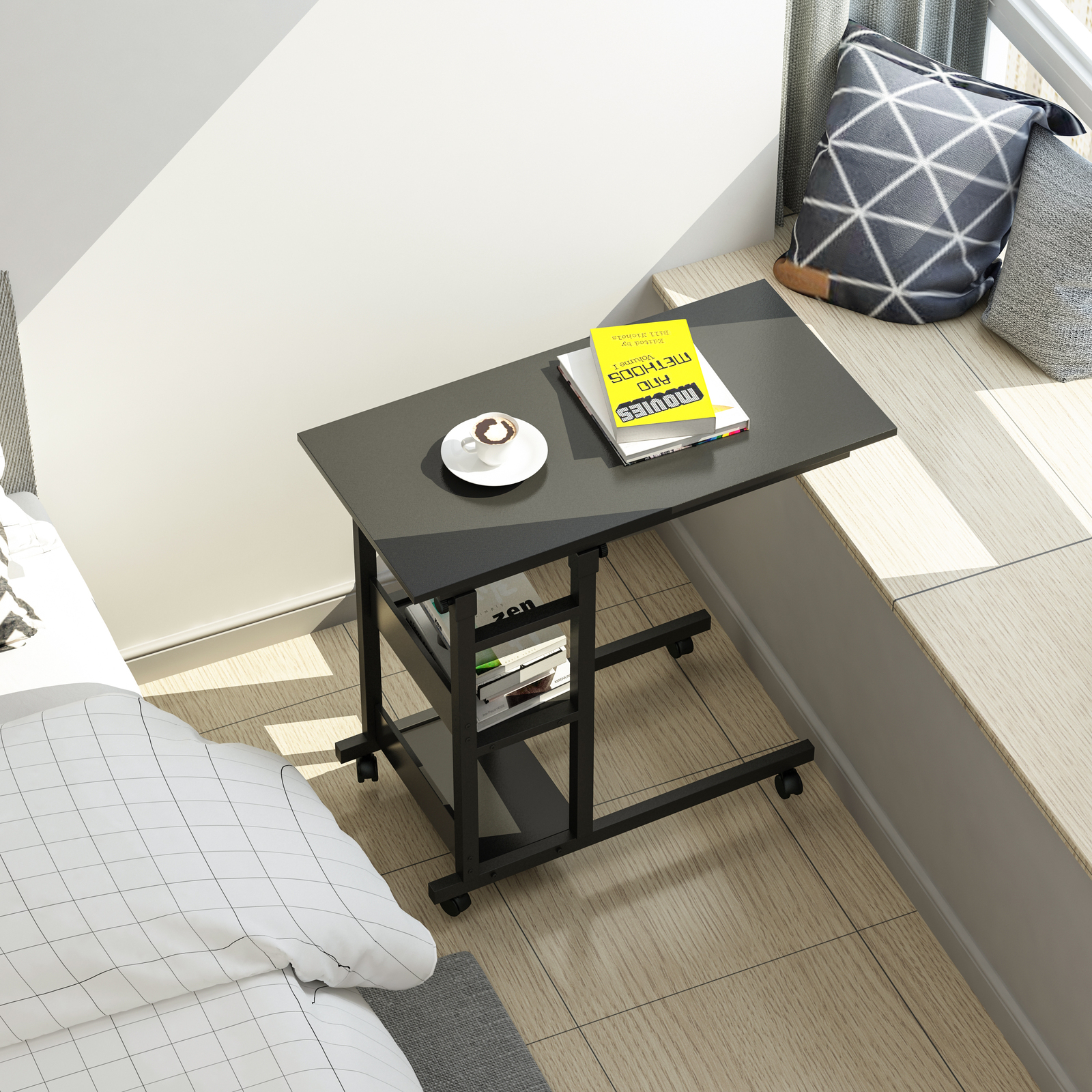YES4HOMES Side Table with Storage Shelves, Height Adjustable Sofa Couch Coffee End Table Bedside Table Laptop Desk with Wheels