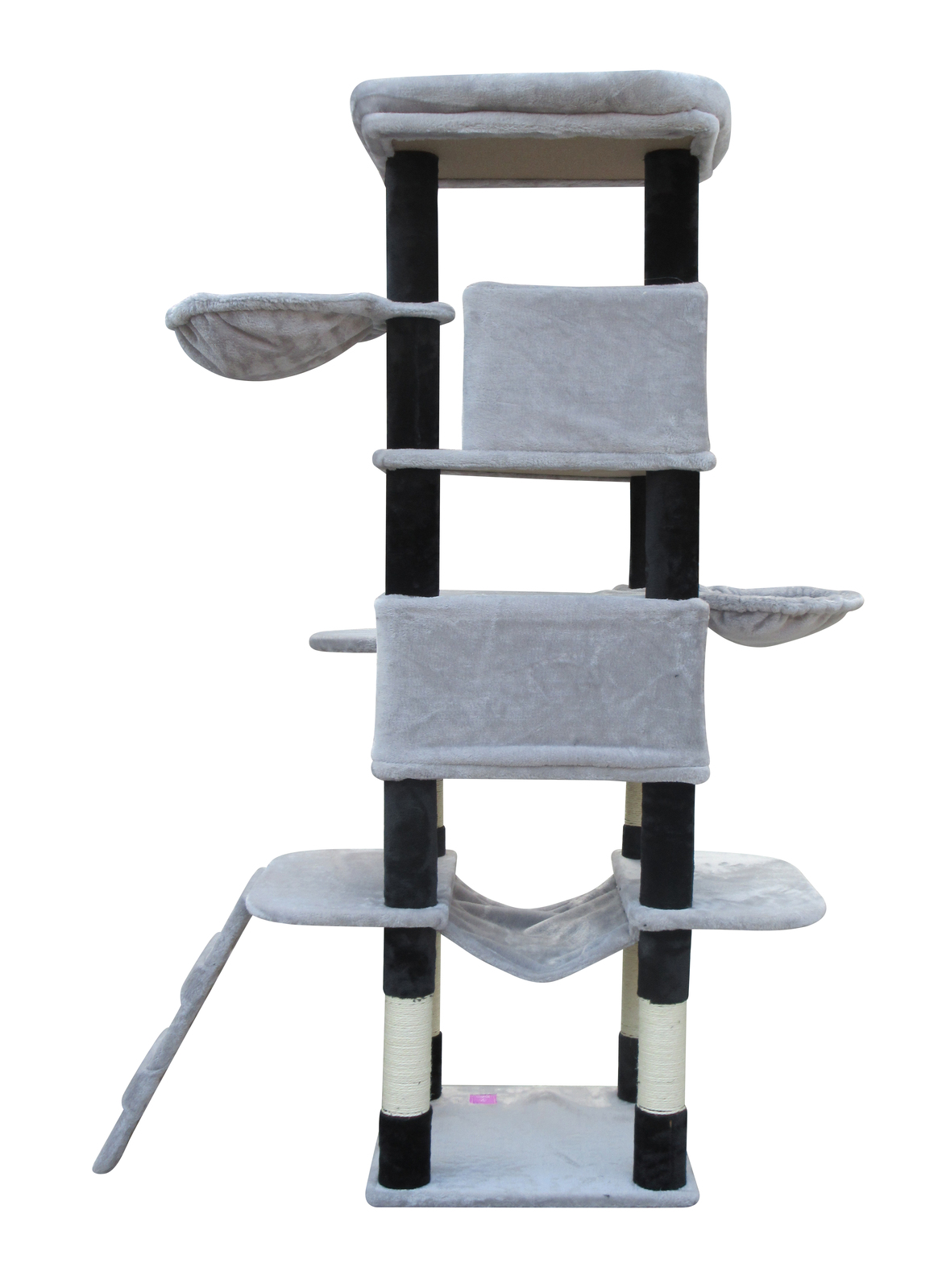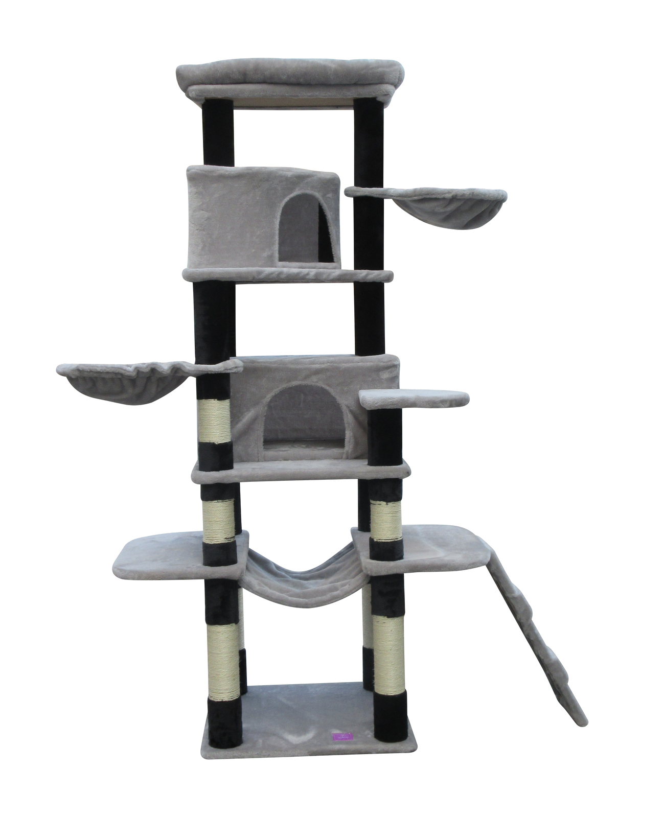 This cat tree provides a versatile environment for your cat to scratch, perch, climb, and play. It features multiple platforms and a plush surface for added comfort, making it an ideal addition to your home for your feline friend.
