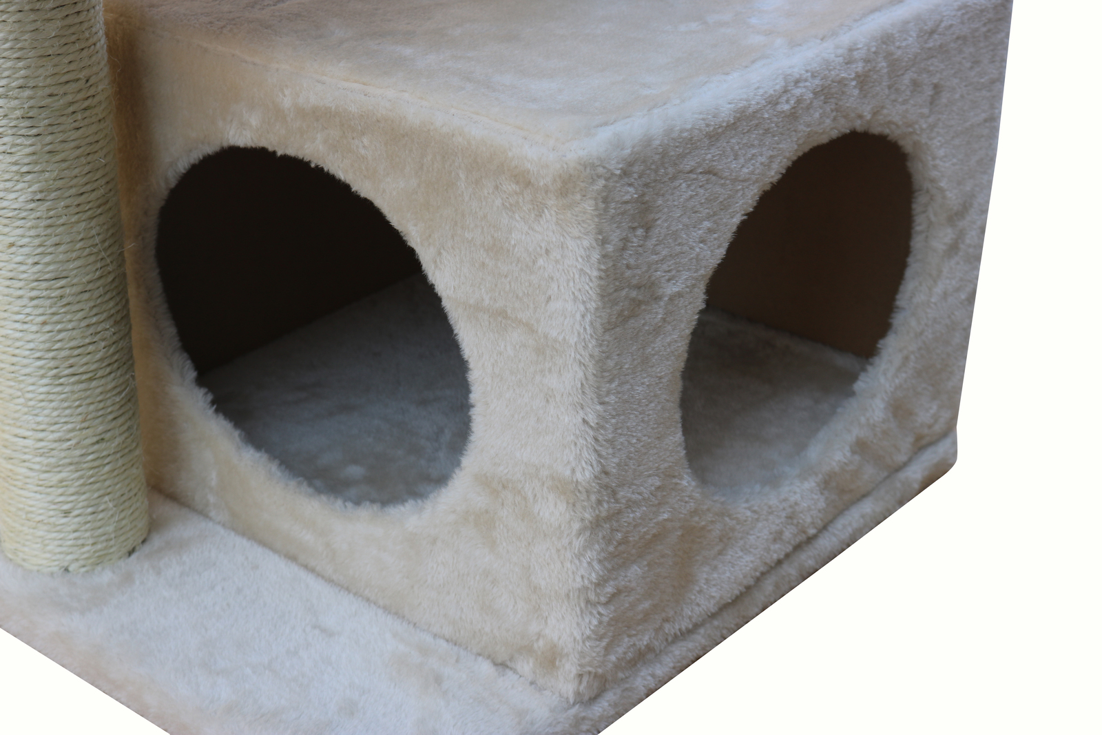Our latest cat tree provides a versatile and engaging environment for cats, combining scratching posts, perches, climbing areas, and resting spaces in one design. It features multiple platforms and a cozy resting box, offering comfort and entertainment for your pets.
