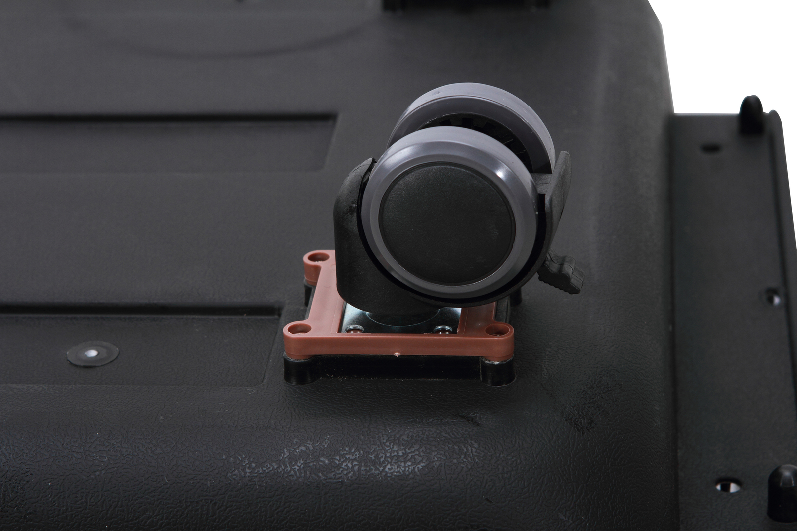 - Includes attachable water dish, built-in handles, and removable locking wheels