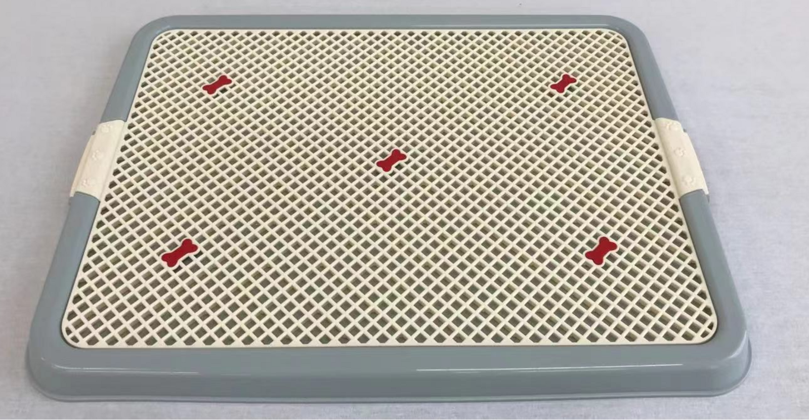 This large portable dog potty training tray is designed to assist with pet house training. It features a functional grid layer to contain messes and is made from durable plastic. The tray is hygienic and antibacterial, making it easy to clean and reuse, providing a convenient solution for pet owners.