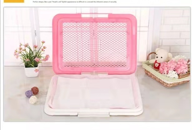 This large portable dog potty training tray is designed to assist with pet housebreaking. It features a functional grid layer and a removable waste removal system, making it easy to clean and reuse. The tray helps contain messes and provides a convenient solution for indoor potty training.