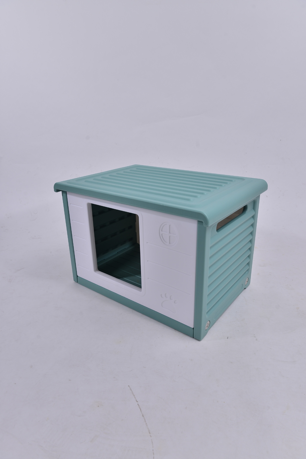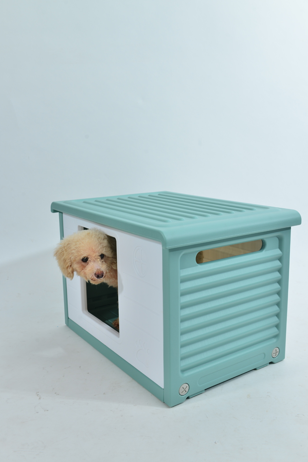 This small plastic pet house provides a comfortable and secure space for your dog or cat. It features a sturdy design with multiple ventilation points to ensure natural airflow, making it suitable for small pets up to 15kg. The raised floor helps keep your pet away from fleas and dirt, offering a clean environment. Easy to assemble, this kennel is a practical choice for pet owners seeking a durable and well-ventilated shelter.