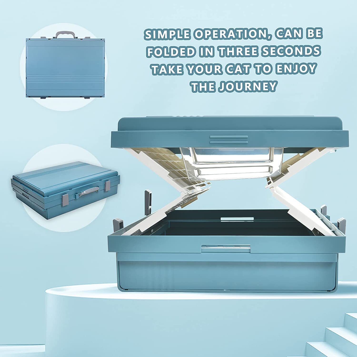 This portable cat litter box features a foldable design with a handle for easy transport and storage. Its covered structure helps contain litter and control odors, making it suitable for multi-cat households and providing privacy for your pet.