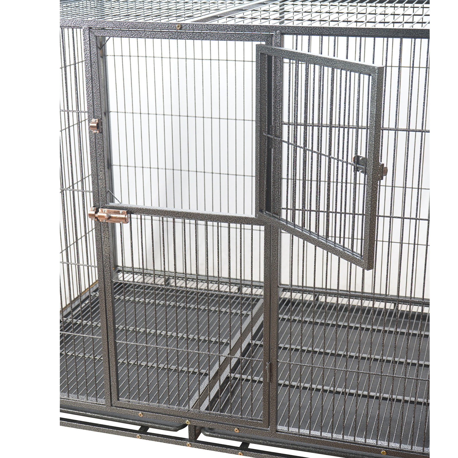 This large metal pet cage is designed to accommodate dogs, cats, rabbits, and other small animals. It features a durable construction with a powder-coated finish, ensuring safety and longevity. The cage is portable and easy to assemble, making it suitable for various settings and needs.
