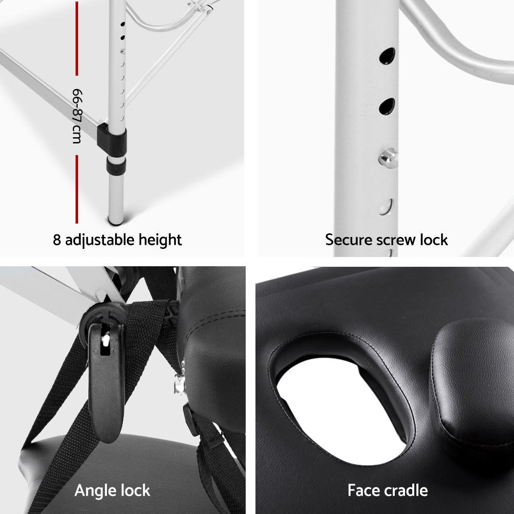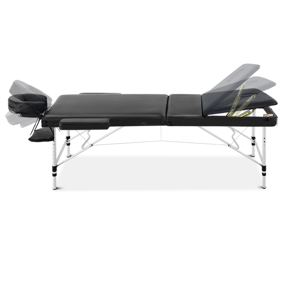 Zenses Massage Table 60cm Portable 3 Fold Aluminium Beauty Bed Black