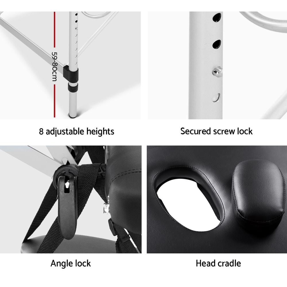 Zenses Massage Table 75cm Portable 2 Fold Aluminium Beauty Bed Black
