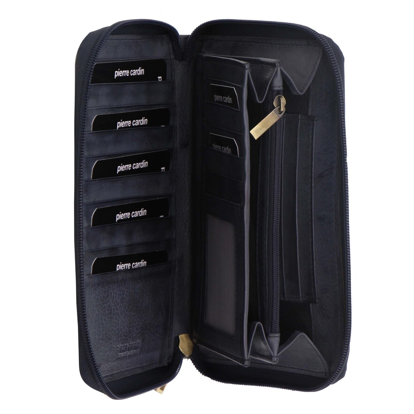 Pierre Cardin Perforated Leather Ladies Handy Travel Wallet – Black