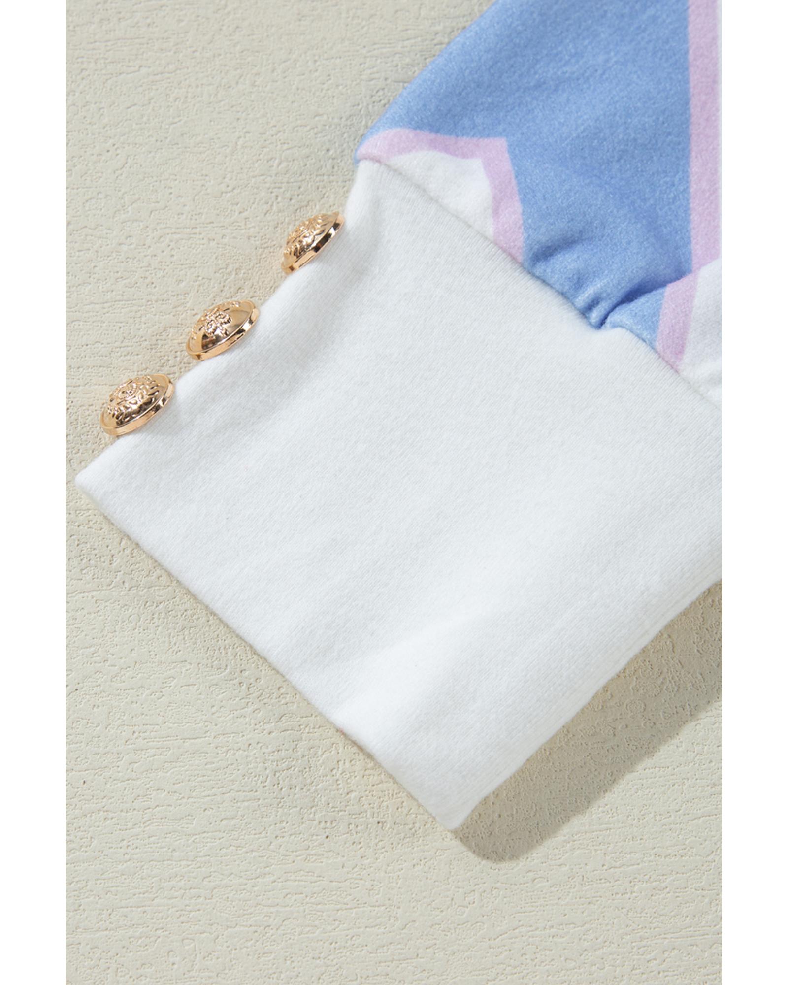 Sky Blue Zigzag Striped Print V Neck Oversized Top – S